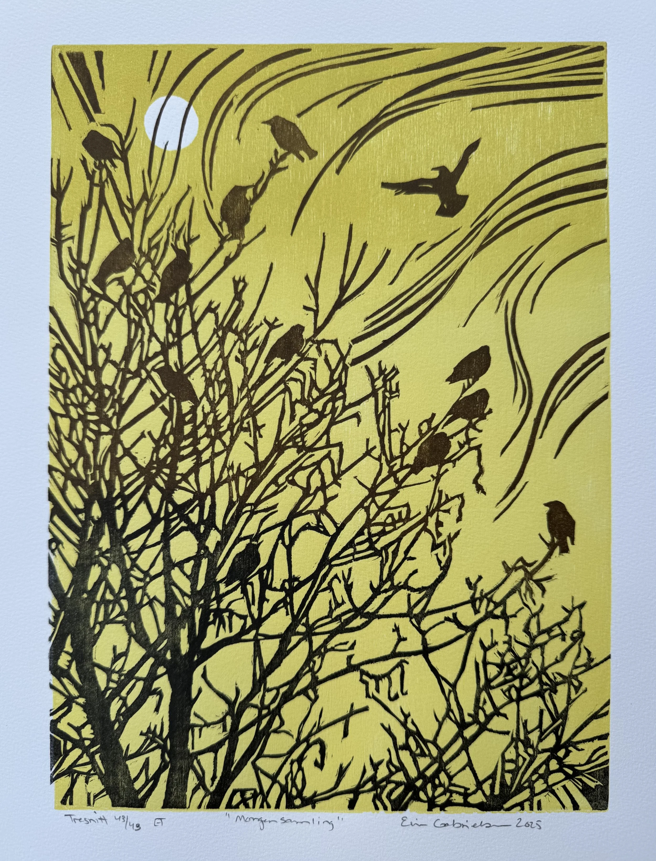 Elin Gabrielsen har en Bachelor og Master-utdannelse fra Kunsthøgskolen i Bergen. Hun er opptatt av syklus og tidslinjer, og tresnittene hennes avbilder ofte natur og dyreliv. Hun har hatt separatutstillinger, og deltatt på kollektivutstillinger. Elin Gabrielsen har fast arbeidsplass på Tou Trykk. www.elingabrielsen.no